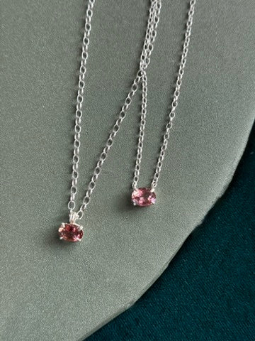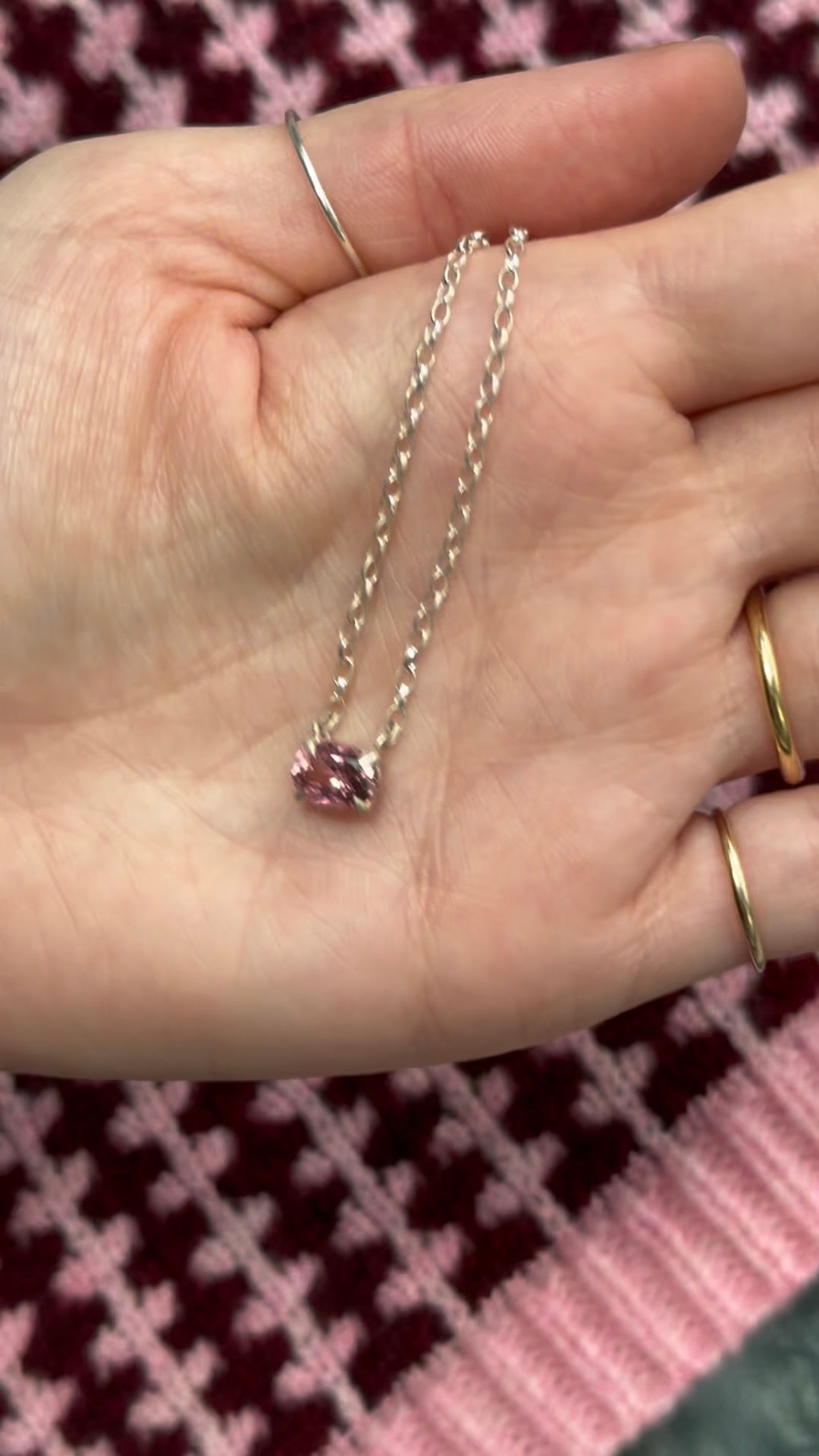 Dusty Pink 1.27ct Oval Tourmaline Necklace on 16" sterling silver satin finish mini belcher chain.